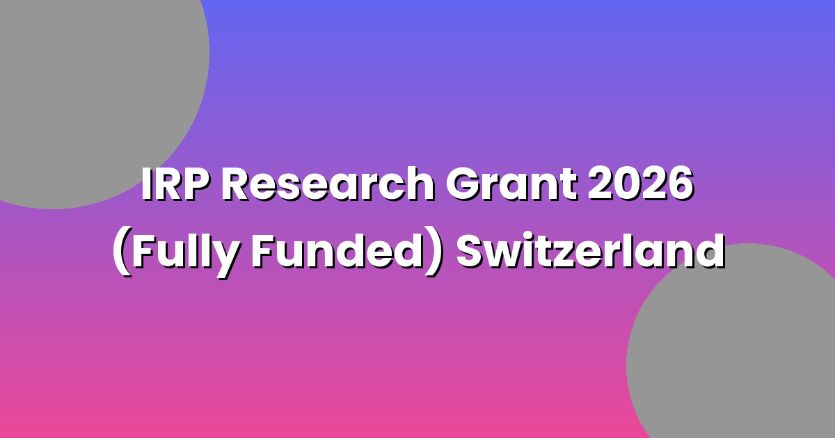 IRP Research Grant 2026 (Fully Funded) Switzerland