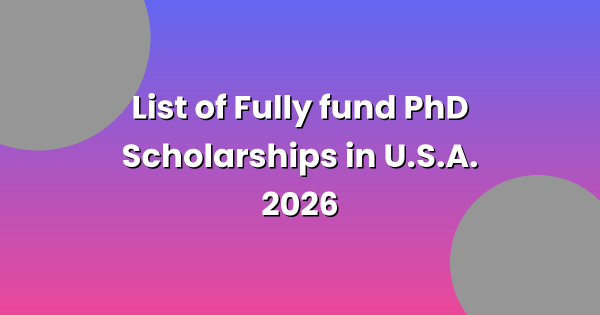 List of Fully fund PhD Scholarships in U.S.A. 2026