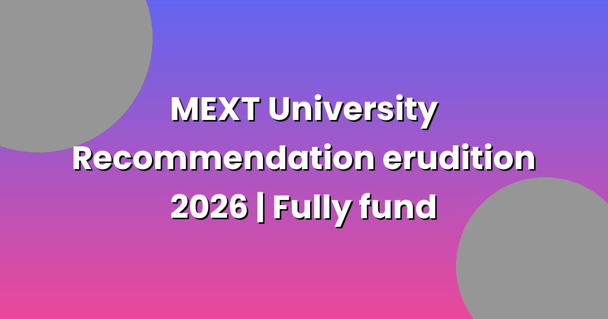 MEXT University Recommendation learnedness 2026-2027 are fully fund scholarships for international scholarly person. These scholarships are useable for masters and Ph.D.. MEXT University Recommendation erudition will cover100% of tuition,144,000 JPY per calendar month for living expenses and economy class air journey.